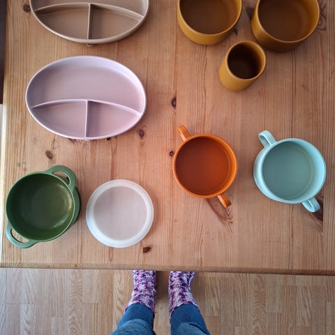 Mushie tallerken 8stk og skål 6stk + 4stk Baby Liva klemmeposer