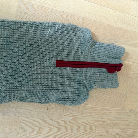 Selges fordi den ikke brukes, passer ikke min form. Godt brukt. Noen små hull her og der, men mye genser igjen.