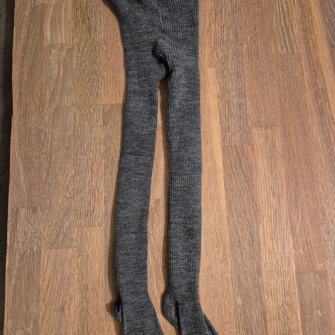 Strikket strømpebukse i ullblanding og grå-brun farge. Bukse er meget elastiske og har spennende retro strikkemønster. Bredt strikk på mage.