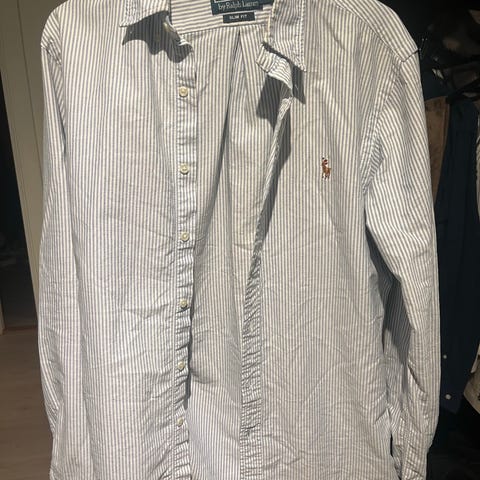 Ralph Lauren Polo skjorte for herre i størrelse S. Skjorten er laget i kordfløyel og har en mørk blå farge. Modellen har klassisk krage, lange ermer og brystlommer med klaff og knapper. Passform er merket som Classic Fit på innsiden av kragen. Egner seg godt som en casual skjorte eller som et lett overskjorte-plagg i kjøligere vær.
