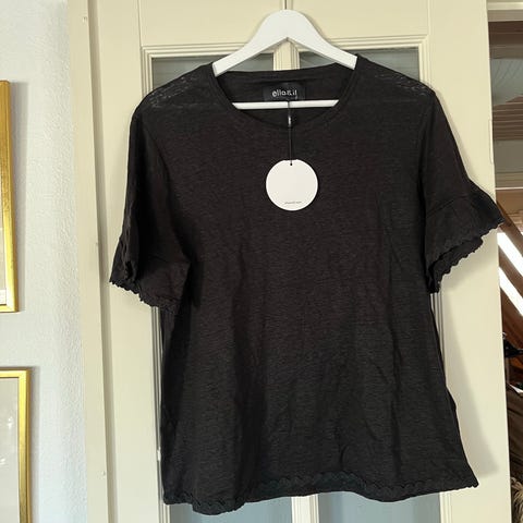 En deilig og lett t-skjorte i avslappet passform med korte ermer. Laget i 100% lin og denne modellen kommer med fine volangkanter på ermene og 'wavy' detaljer. Kjøpt for 1000kr