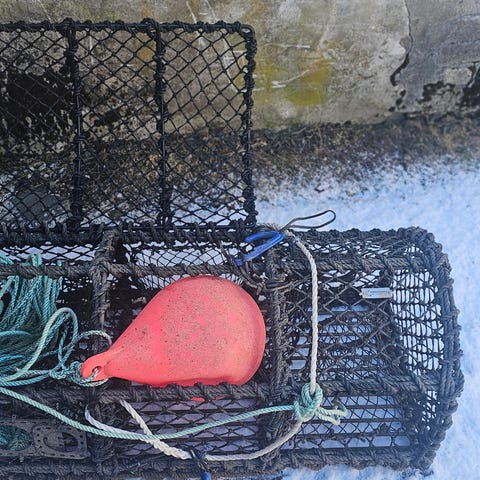 Fiskegarn . Garnene har ulike farger på tauverk og flytetau, blant annet grønt og mørkeblått. Passer til bruk i sjø eller ferskvann etter behov. Selges samlet slik de fremstår på bildene.