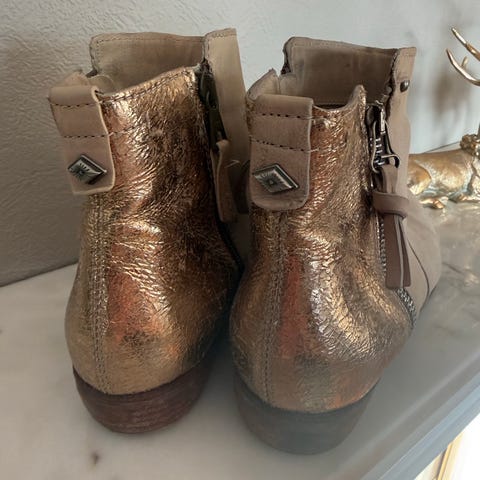 Lekre dyprøde støvletter med gulldetaljer. Kjøpt i utlandet, aldri vært brukt. Kan hentes i Drøbak eller sendes.