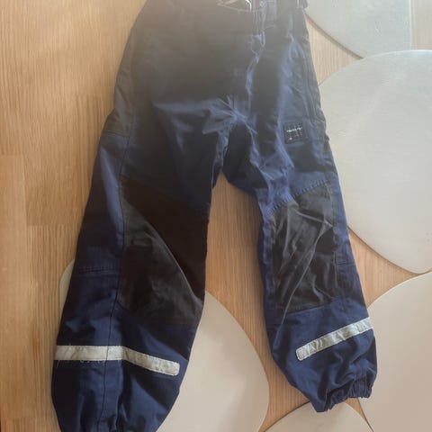 Polarn O. Pyret barnebukse i svart polyester for unisex, størrelse 122 Buksen har justerbar midje med knapp og glidelås, samt beltehemper. Det er refleksdetaljer på bena for bedre synlighet. Nederst på bena er det borrelås for justering av benvidde.
