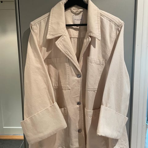 Jakken ble dessverre for stor, men er en fin vår jakke som kanskje noen andre kan få glede av. Lys beige farge.