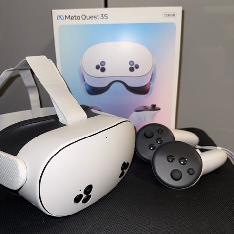 Meta Quest 3S VR briller med 2 håndkontrollere.