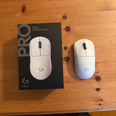 Logitech G Pro X Superlight 2 trådløs mus i svart. Musen har et lettvektsdesign og symmetrisk form som passer for høyrehendte og venstrehendte brukere. Utstyrt med rullehjul og standard knappeoppsett, samt sideknapper på venstre side. Egnet for bruk med PC til generell bruk og gaming. Leveres med original eske etter det som vises på bildene.