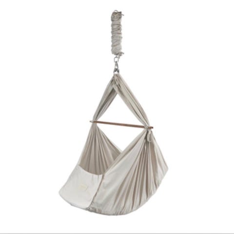 Yngri gyngehuske med oppheng og bærebag i grå farge.