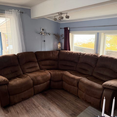Grei sofa selges. Modulsofa. Trenger muligens en liten vask.