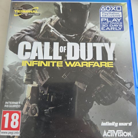 Call of Duty Infinite Warfare Legacy Edition PS4 spill. Fysisk utgave på Blu-ray til PlayStation 4. Legacy Edition inkluderer hovedspillet Call of Duty: Infinite Warfare samt ekstra innhold knyttet til serien. Spillet har aldersgrense 18 år og støtter flerspillermodus både lokalt og online, avhengig av PlayStation Network-tilgang og eventuelt abonnement. Egnet for brukere som ønsker et førstepersons skytespill til PS4 med kampanje-, flerspiller- og zombiemodus.