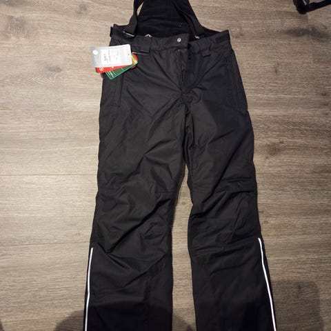 Nesten ubrukt vinterbukse, med regulering av livvidde med borrelås, og borrelås og glidelås nederst på beina.