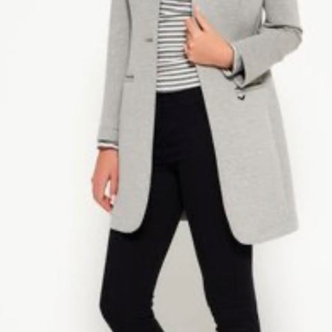 ONLY cardigan jakke for dame i størrelse M. Modellen er i en grå melert farge og laget i polyester. Jakken har enkel, rett fasong med lange ermer og sidelommer. Passer som lett ytterjakke eller som lang cardigan innendørs.