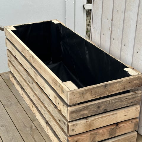 Kassene leveres ferdig pusset, med duk og hull for vanndrenering – klare til bruk.