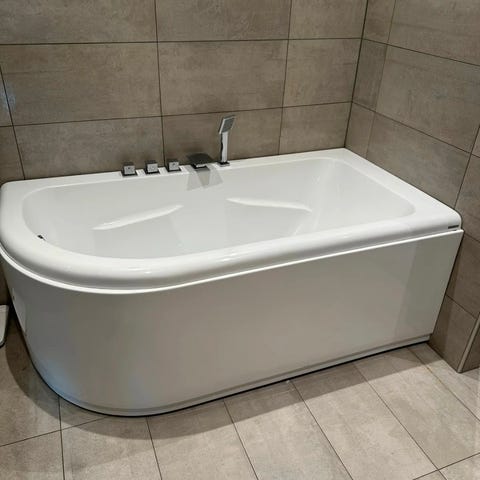 Hjørnebadekar akryl hvit med armatur