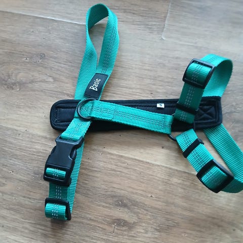 Selger hundesele i justerbar størrelse i grønn og turkis farge fra Hunter. Flere justeringspunkter gjør det mulig å tilpasse selen til hundens kropp. Passer liten til medium størrelse hund.