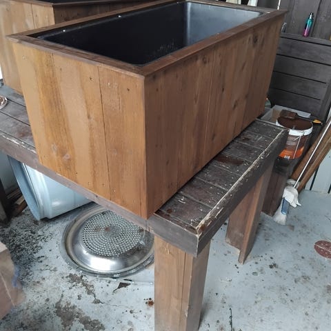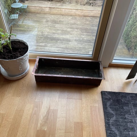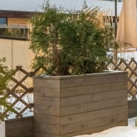 2 rektangulære plantekasser i grå med eikelist . Pris kan forhandles v/rask avgj