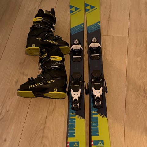 Rossignol P-Carv alpinski med bindinger. Skiene har twintip-inspirert form med bred tupp og lett innsving. Lettkjørt til barn. 92 cm.