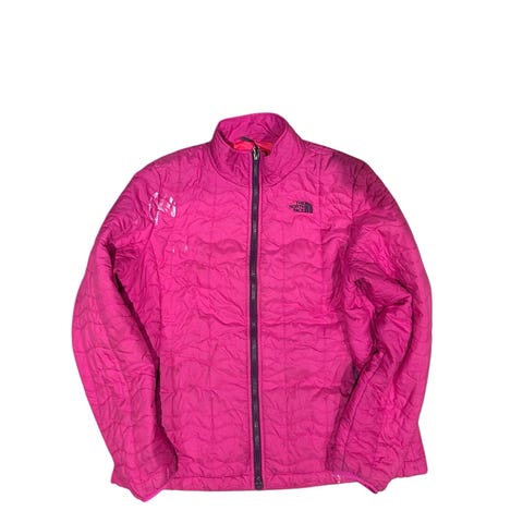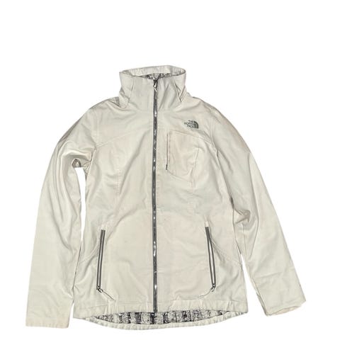 The North Face jakke for dame i størrelse L. Jakken er rød og laget i polyester. Den har høy krage og hel glidelås i front. Logo er plassert på brystet og øverst på ryggen. Egnet som ytterjakke til hverdagsbruk og lett friluftsliv i kjøligere vær.