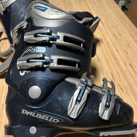 Tecnopro Custom Pro alpinstøvler i svart plastskall. Støvlene har fire justerbare spenner i metall foran samt justerbar stropp øverst for bedre tilpasning rundt leggen. Myk og polstret innersko med oransje og grå detaljer gir støtte og komfort. Sålen er merket med størrelse 280 (ca str 42) og sålelengde 318 mm. Passer til bruk i vanlige alpinbindinger til alpint og skikjøring i bakke.