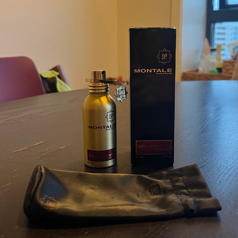 Montale Oud Tobacco parfyme på 100 ml. Flasken er i rød metallutførelse og leveres med original eske. Dufttypen er en eau de parfum med oud- og tobakknoter, egnet for både kvinner og menn avhengig av preferanse. Det er brukt 10-15 spray av den.