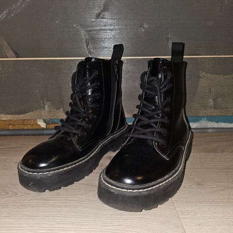 Fine og solide boots selges. Skoene lukkes enkelt med glidelås på siden, noe som gjør dem lette å ta av og på. Komfortable og passer perfekt til både hverdag og finere anledninger.
