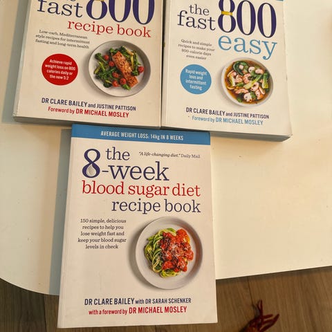 The FastDiet Cookbook kokebok på engelsk. Boken inneholder rundt 150 kalorikontrollerte oppskrifter tilpasset periodisk faste og 5:2-diett. Inneholder fargebilder av retter og forklarende tekst om hvordan oppskriftene kan brukes i hverdagen. Softcover-utgave med informasjon og sitater fra forfatterne Mimi Spencer og dr. Sarah Schenker. Forord av Michael Mosley.
