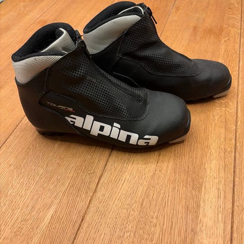 Alpina langrennssko i svart med glidelås foran og høy ankelstøtte. Skoene har myk polstring rundt ankelen og reflekterende felt bak. Passer til klassisk langrenn. Sålen er tilpasset moderne langrennsbindinger (se bilder for detaljert såletype). Egnet for bruk på preparerte løyper.