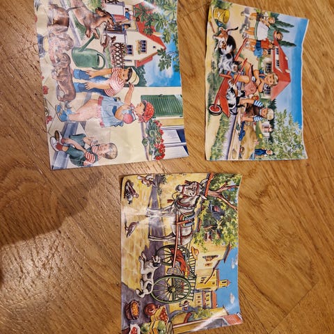 Veldig pene pusleklosser i tre med bibelske julemotiv. Kan sendes for 69kr.
