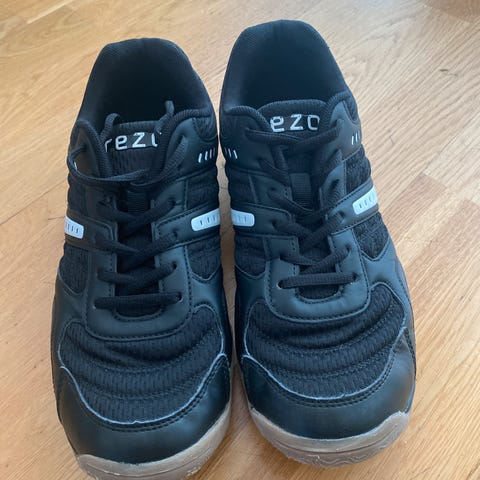 Rezo innendørssko i størrelse 36. Skoene er svarte med lyse detaljer og har lys gummisåle som egner seg for bruk på innendørs underlag. Overdelen er i tekstil og syntetisk materiale med snøring for justering av passform. Passer til ulike typer innendørsaktiviteter og trening. Lite brukt