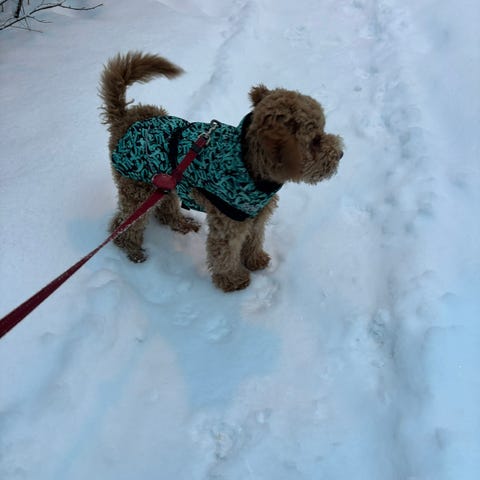 Kjempefint militærgrønt foret vinterdekken str 45 cm, kun brukt en liten gang. Selges for kr 400. Kjøpt fra I love dogs.no. veldig fint dekken.