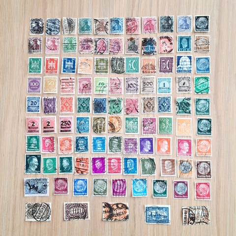 Eske med 55 innstikk kort med eldre frimerker fra Deutsches Reich. Se bilder som viser alle kortene. Her er det mye merker og mulighet for varianter. Hentes på Jessheim eller sendes mot forhåndsbetaling pluss porto. Porto kr 80,- som sporbar postpakke. Se også mine andre annonser.