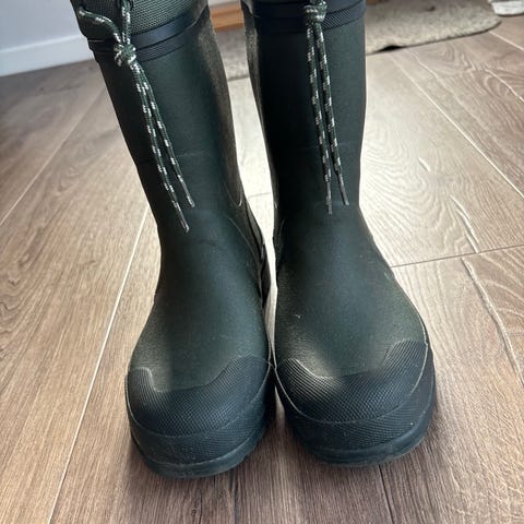 Tretorn gummistøvler for barn, unisex. Støvlene er gule med hvit yttersåle og mørk kant øverst. Grovmønstret såle i gummi gir godt grep på vått underlag. Refleksdetaljer bak på skaftet for bedre synlighet. Passer til bruk i regnvær og fuktige forhold i barnehage, skole og fritid.