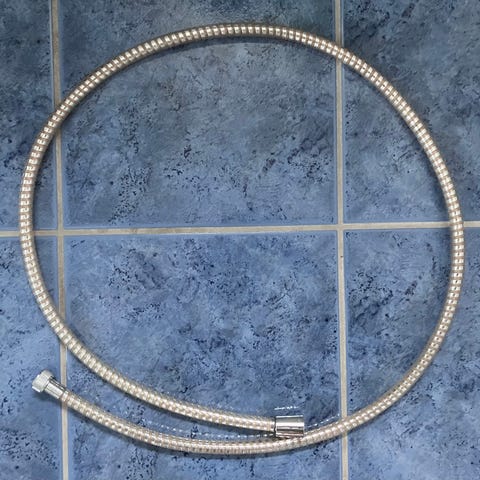 Taron dusjslange i metall, lengde 2 meter. Kjøpt i Spania. Fikk ikke bruk for den likevel. Jeg vet ikke om den har lik str som norske dusjer. Jeg sender dessverre ikke om dagen. Hentes i Skien