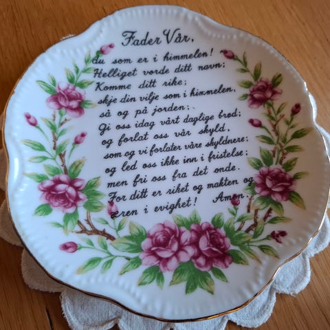 Porselens bok med Fader vår