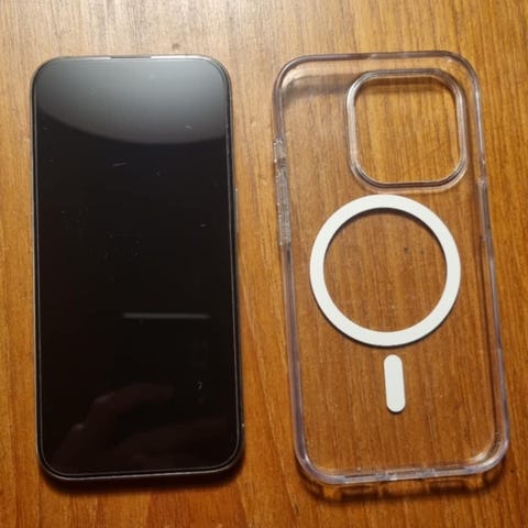 Apple iPhone 15 Pro med 128 GB lagringsplass. Leveres med deksel og alt av tilbehør samt originalemballasje. 87% batteri igjen.
