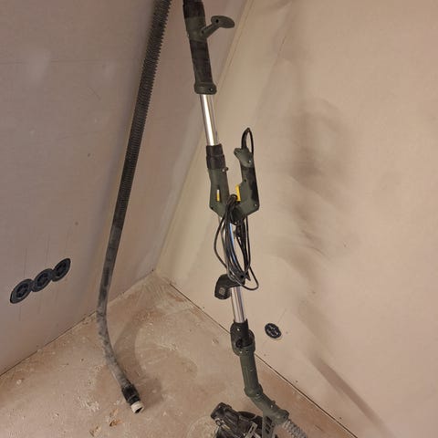 Jeg leier ut Tak-/veggsliper 230 V 710 W Ø225 mm, en elektrisk tak- og veggsliper/giraffsliper som gjør pussing og sliping av tak og vegger betydelig enklere.