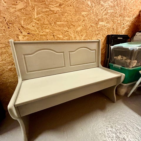 Selger sittebenk med oppbevarings mulighet under.