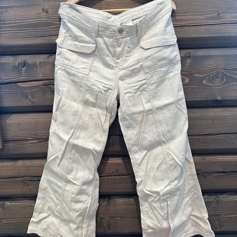 Bukse fra HM str. 44 til salgs. Kjøpt brukt, men var for stor for meg, så kun prøvd på her. Noen merker (se bilde), men jeg er usikker på om det er meningen eller ikke 😅