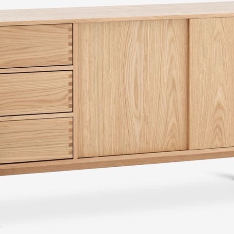 Flott og praktisk skjenk i heltre eik, kjøpt hos O Borgen møbler for 2 år siden. Inneholder: 4 dører, 1 lang hylle, 2 korte hyller og 2 skuffer