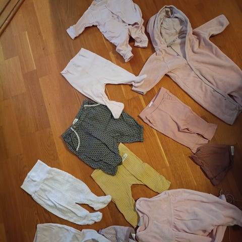 Inkludert noen hjemmestrikkede votter, sokker og bukse.
