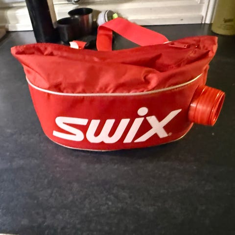 Swix mageøvelse/rumpeveske i grått med røde detaljer. Beltet har justerbar stropp med spenne for feste rundt livet. Hovedrommet har glidelåslukking og er isolert på innsiden, egnet for drikkeflaske eller drikkepose. Ekstra strikker på utsiden kan brukes til å feste småting eller komprimere beltet. Passer til langrenn, løping og annen utendørs aktivitet der man ønsker å ha med drikke og små eiendeler rundt livet.