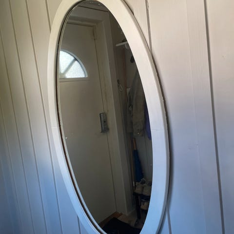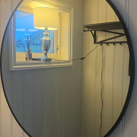 Fint speil, med svart metallramme.