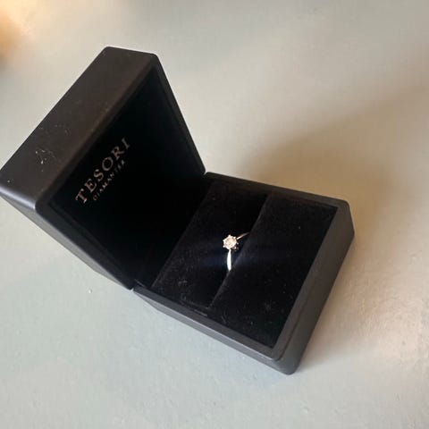 Elegance diamantring i hvitt gull, 14 karat (586) selges. Originalboks følger med.