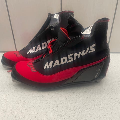 Madshus Nano Carbon Classic i svart og rød farge. Støvlene har snøring med glidelås og overtrekk som beskytter mot snø og fukt. Yttermaterialet er laget for å gi støtte rundt ankel og hæl. Passer til klassisk langrenn på ski med kompatibelt bindingssystem. Str 42