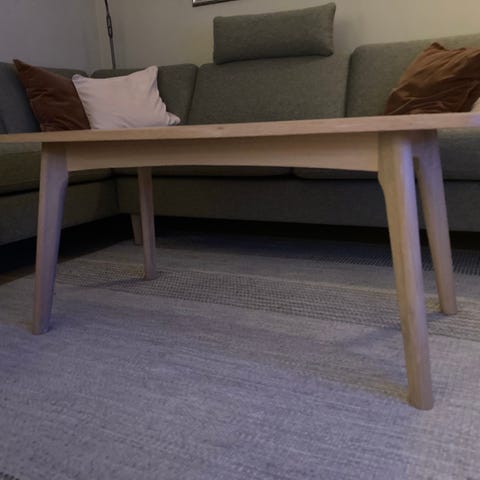Meget pent brukt stuebord/sofabord av typen Kleppe Amazon. Er 130cm langt med klaffene oppe, og 80cm langt med klaffene nede. Kan hentes hos oss på Fetsund.