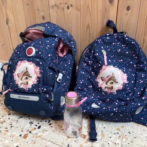 De hadde lite hjemmelekser så sekken var mest til pynt - ikke tung bruk.