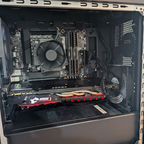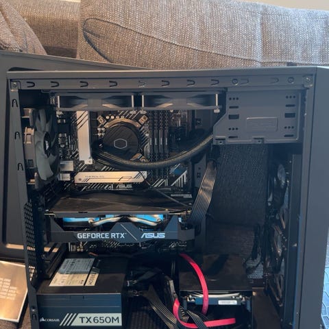 Den er bygd i 2016 og brukt helt fram til nå. Alt fungerer, og det går fint å spille spill som ikke krever den nyeste hardware. 16GB RAM.