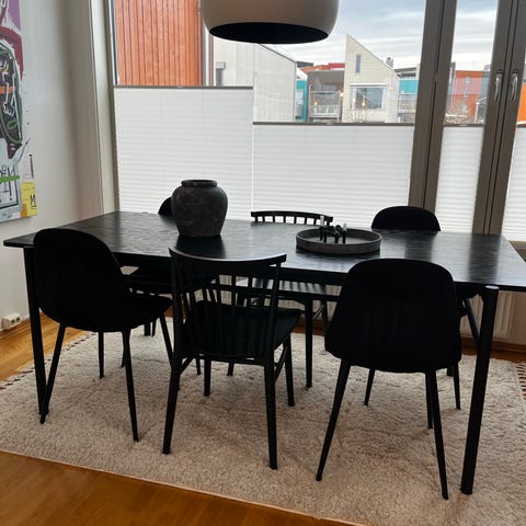4 stk spisebord stoler fra Skeidar selges. Ca 2 år gamle, brukt. Litt flekker som sikkert fjernes lett. Nypris 699,- pr stk. selges for 900 kr alt. Hentes