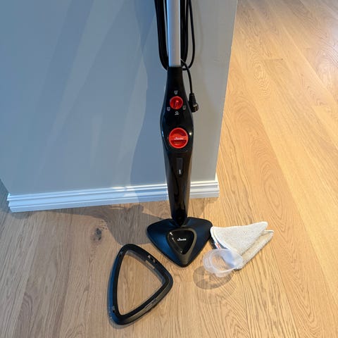 Helt ny dampmopp fra Vileda. Har bare testet den én gang, fungerer som den skal. Følger med to ekstra mopper også som er kjøpt ved siden av.