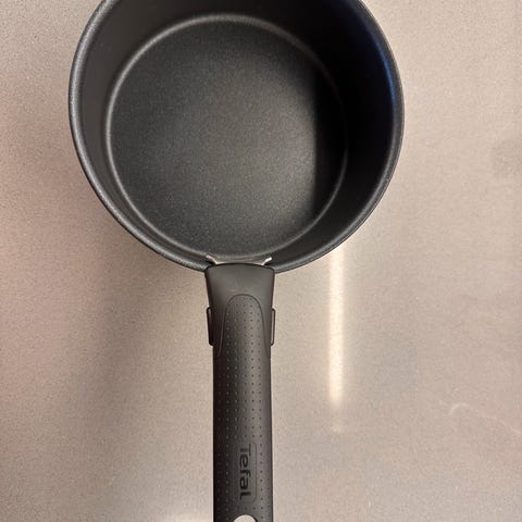 Selger kokekar fra serien Tefal Ingenio. Modellen er kompatibel med induksjonstopper, noe som fremgår av merkingen «Induction Technology».